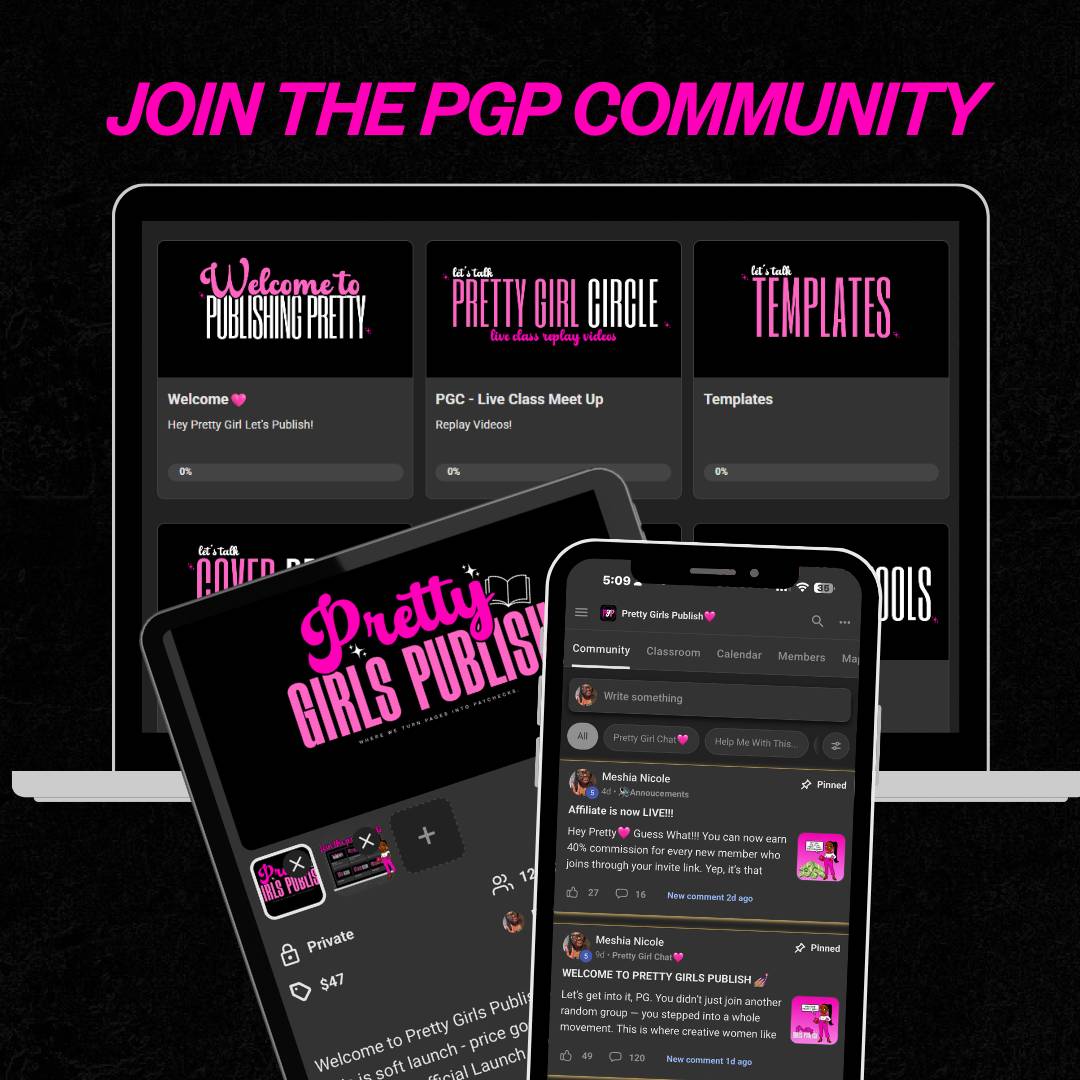 This community isn’t just about publishing—it’s about confidence, clarity, and creating products you’re proud of. Whether you’re starting from scratch or polishing your next big idea, Pretty Girls Publish has your back.